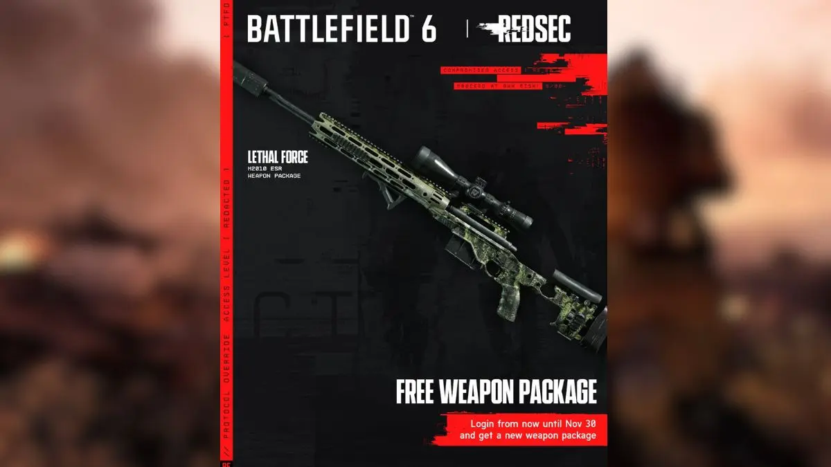 - Battlefield 6 is giving players a M2010 ESR “Lethal Force” sniper weapon package for free.